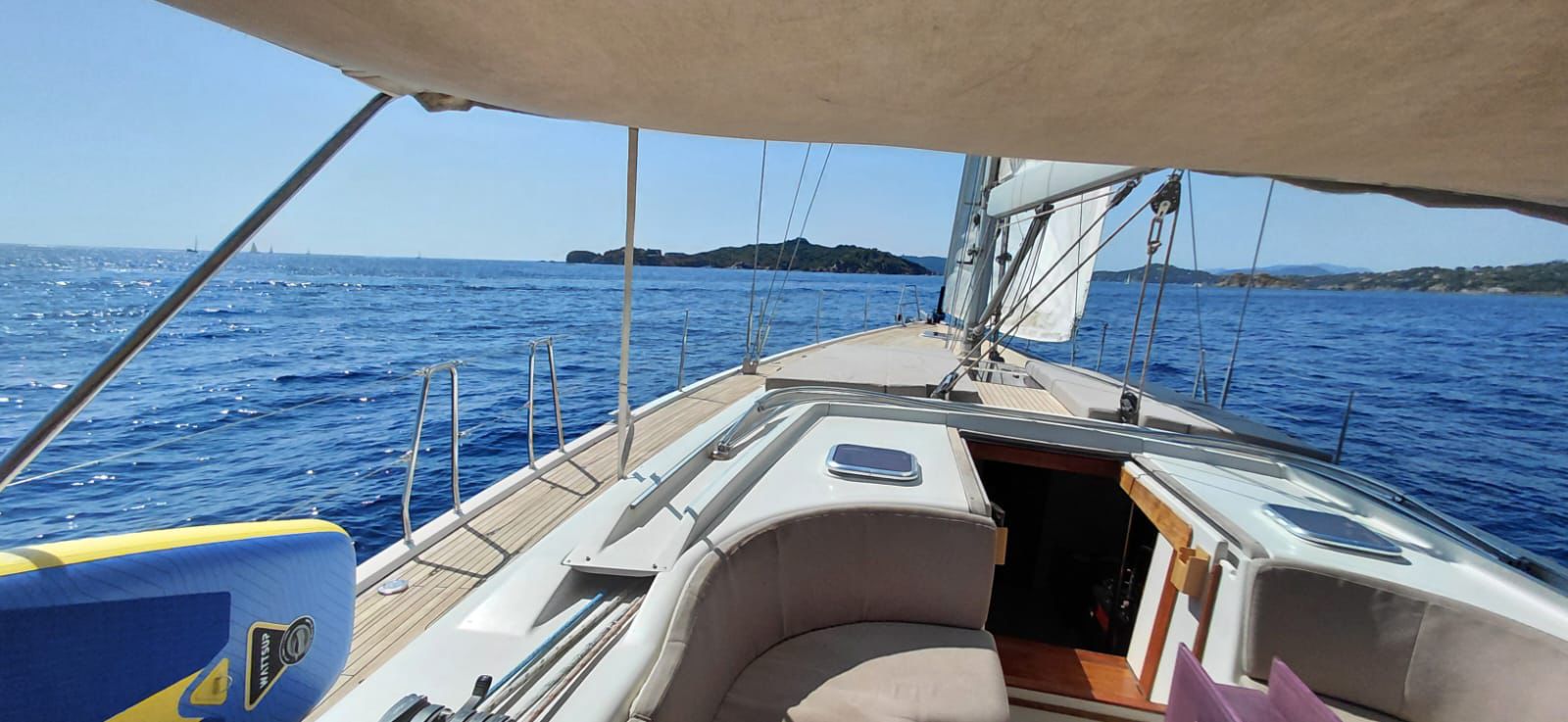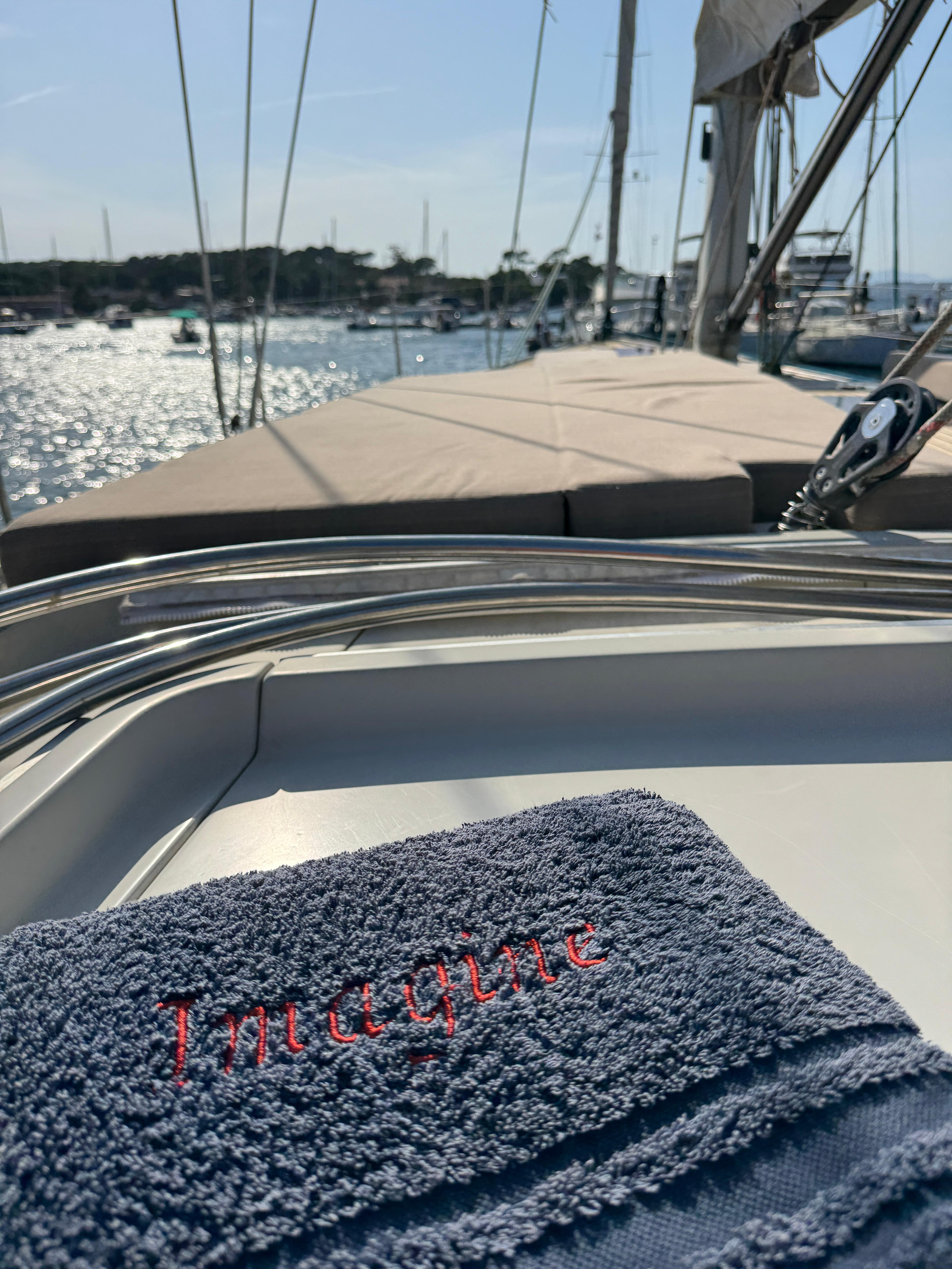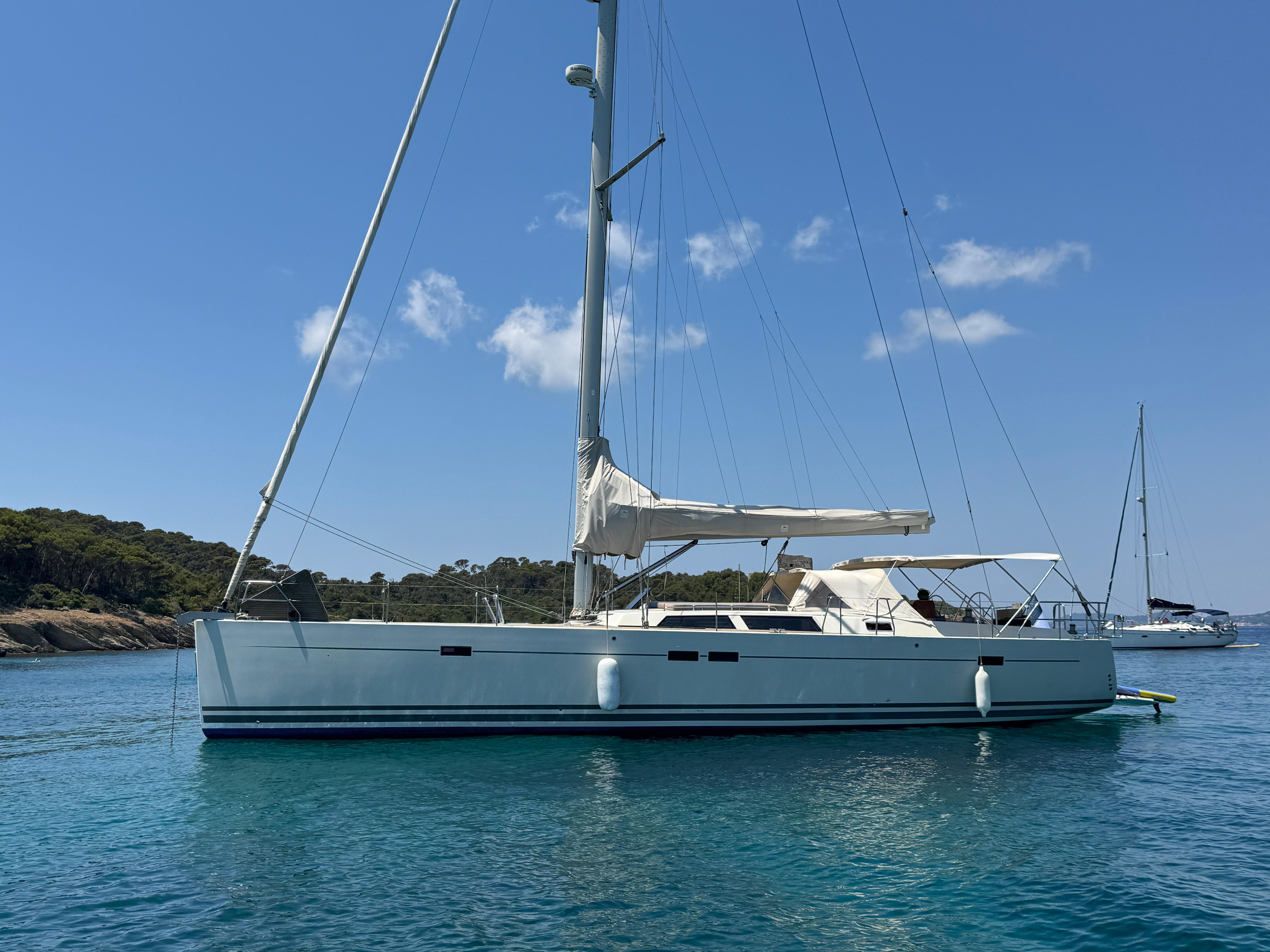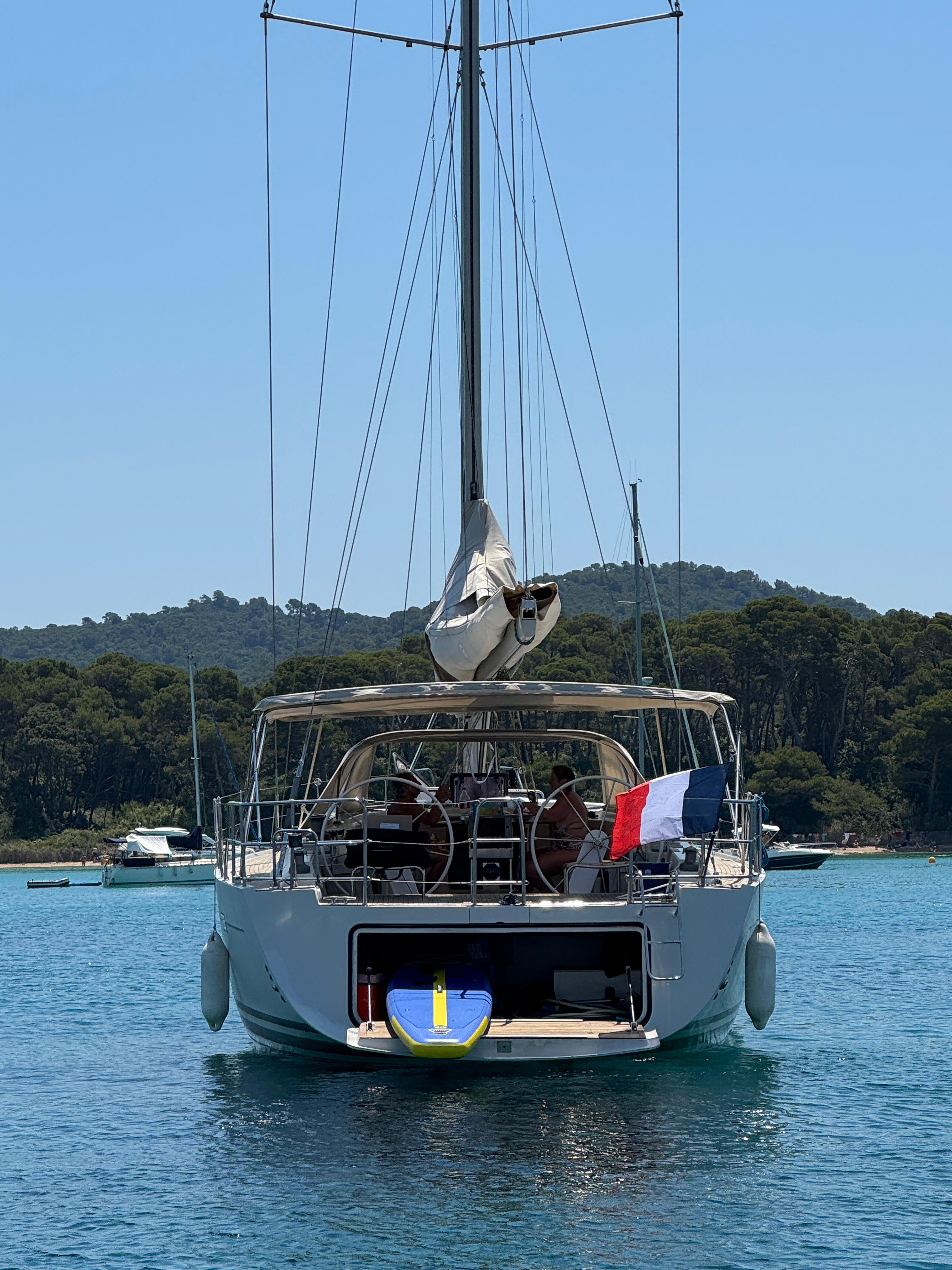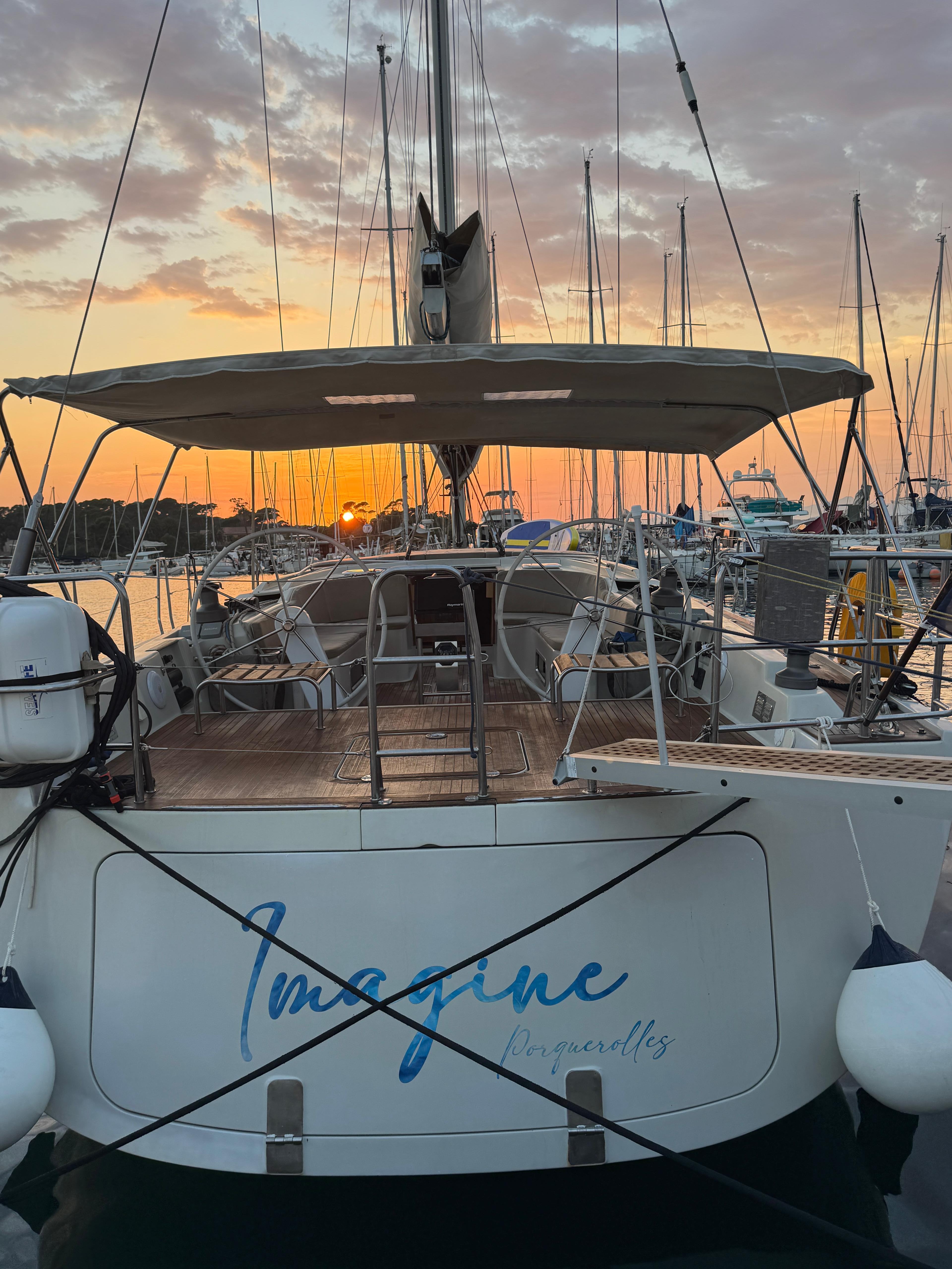 Naviguez en toute liberté à bord du voilier Imagine (Hanse 540e - 16,5 m - climatisé). Idéal pour explorer les criques sauvages des Îles d'Or et leurs eaux cristallines.