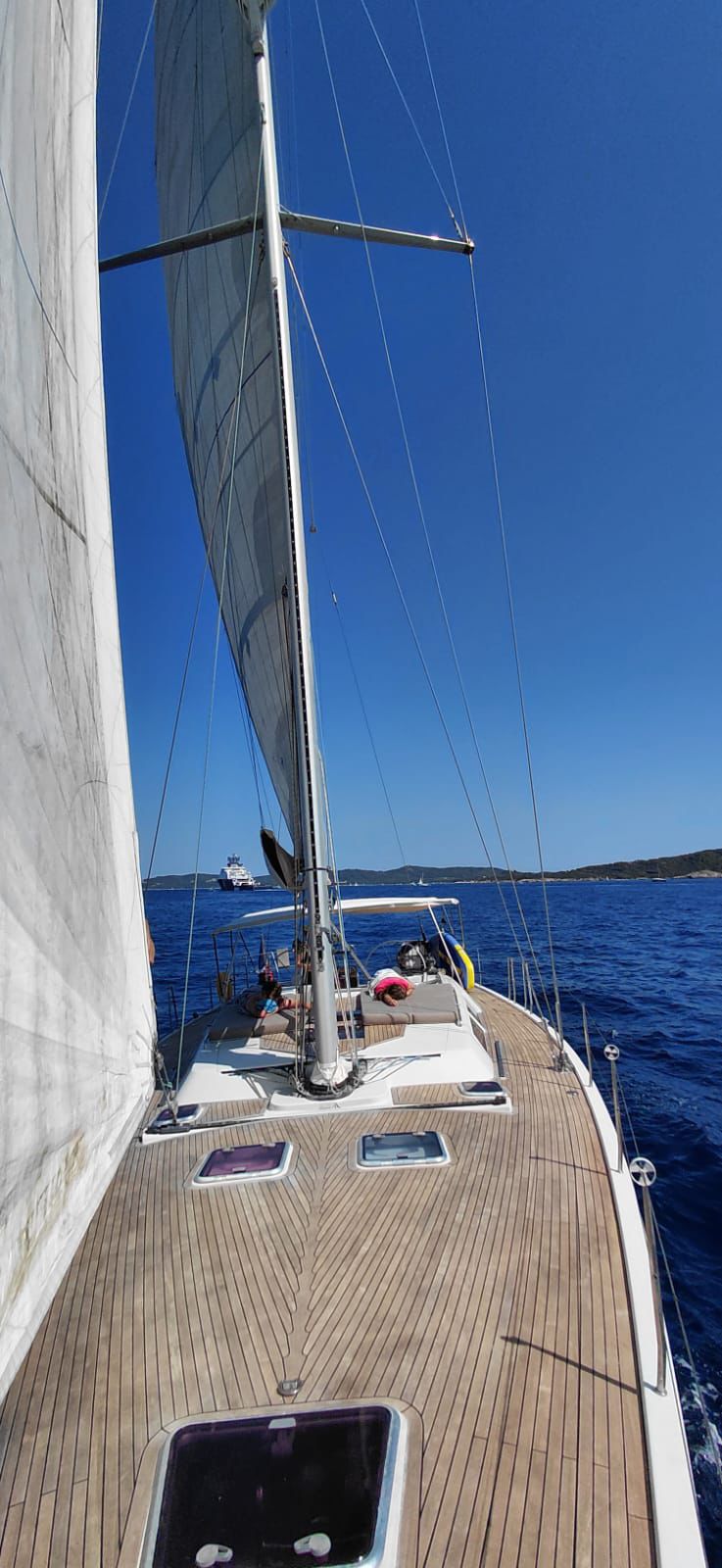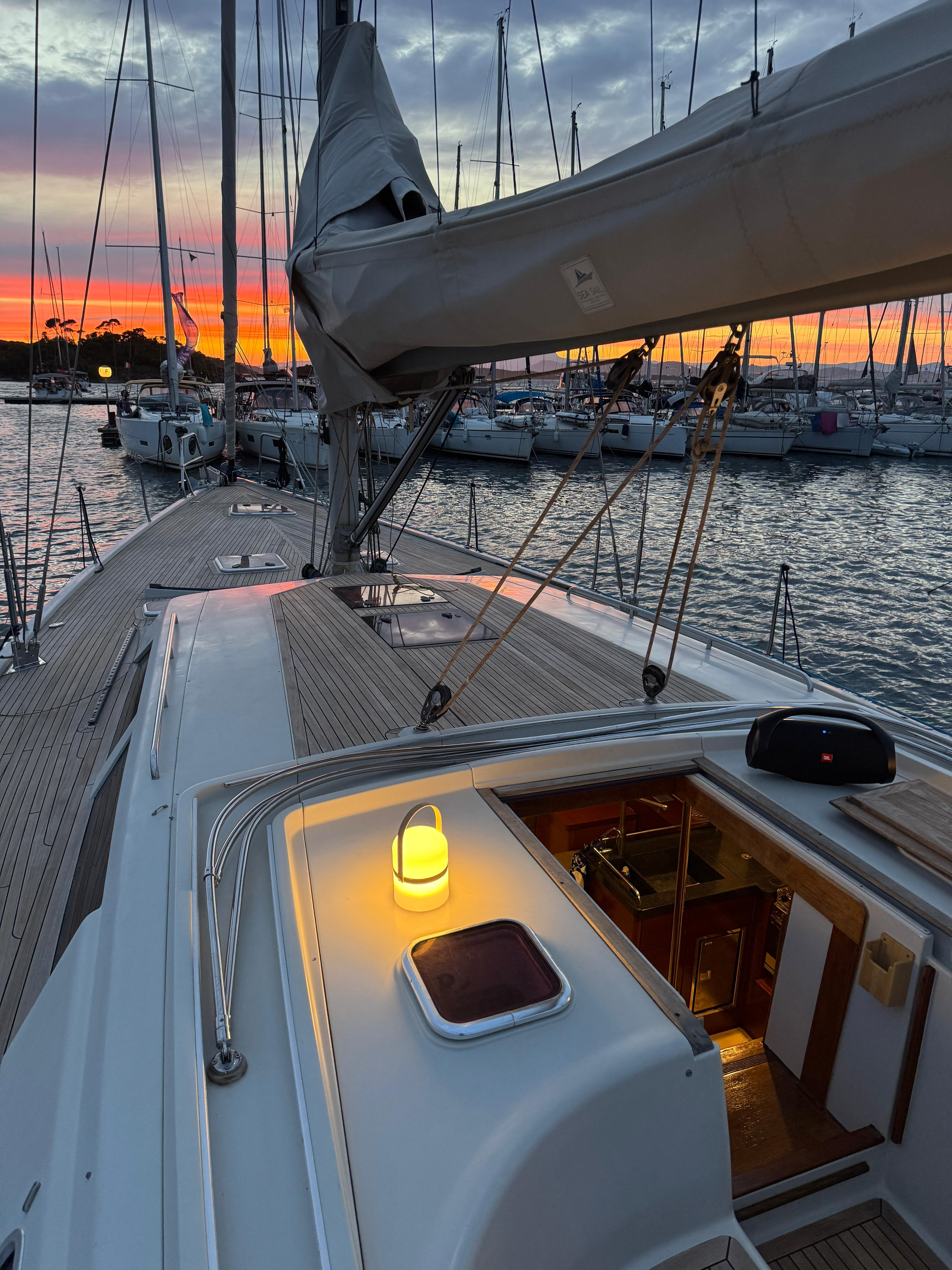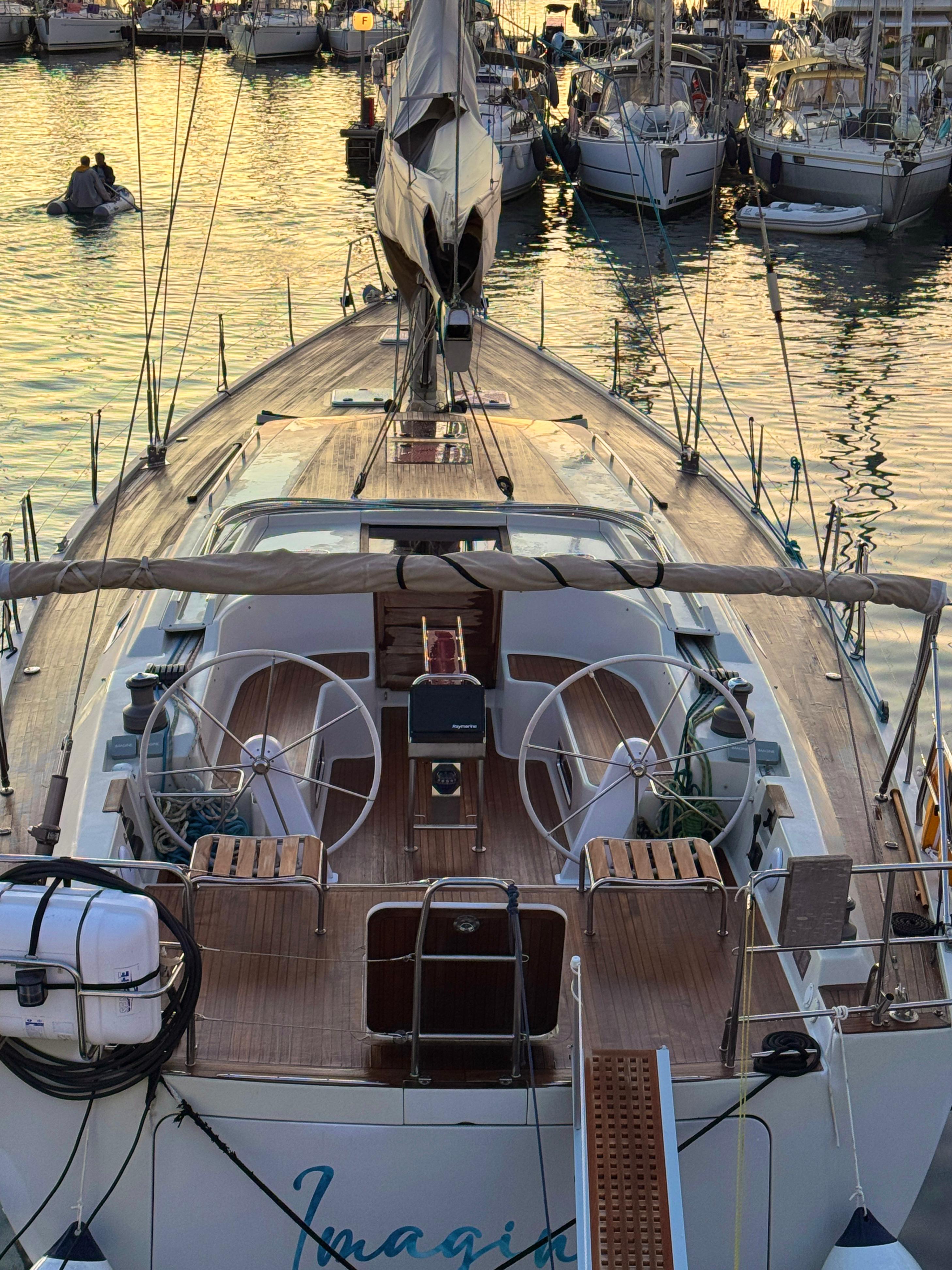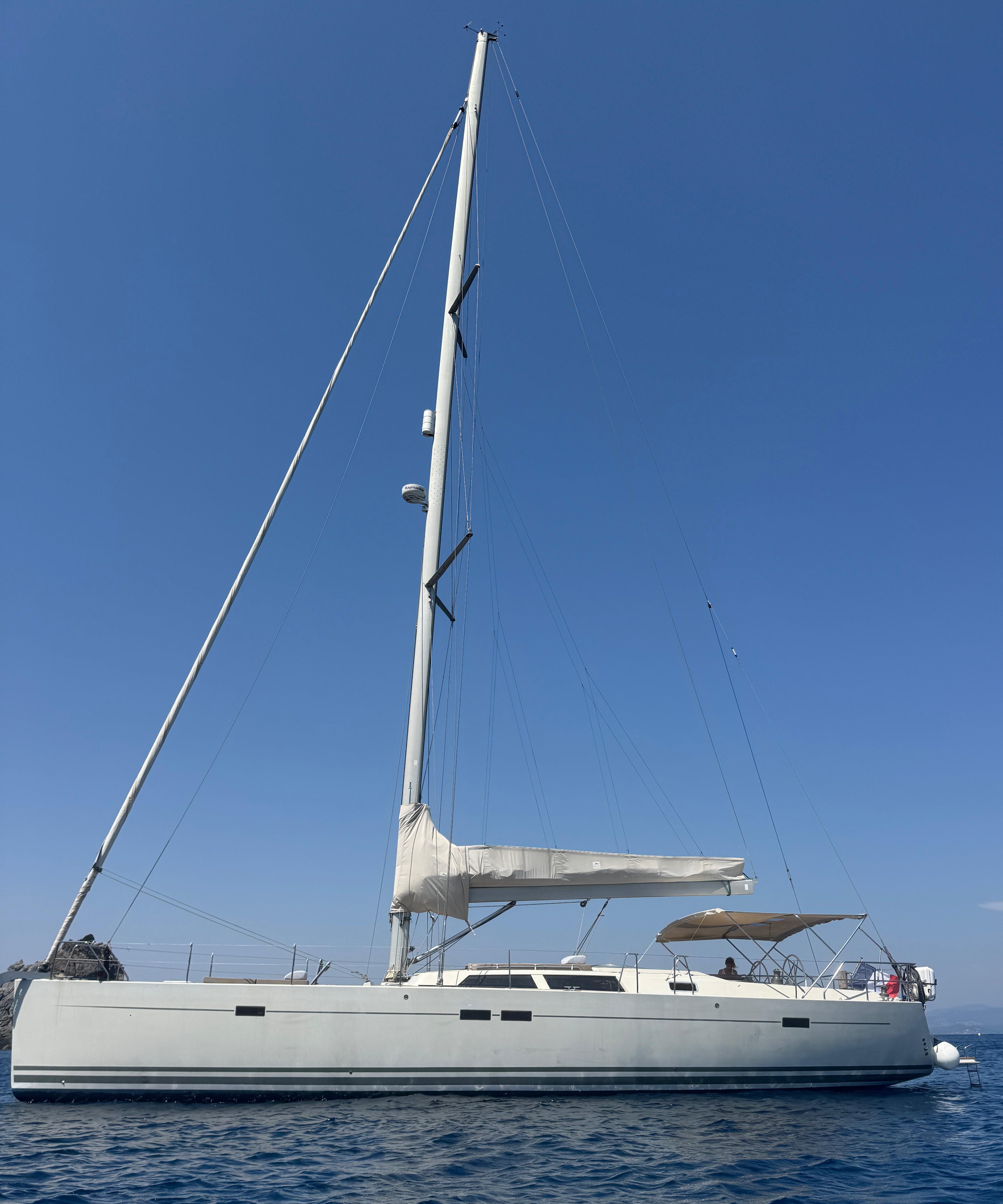 Naviguez en toute liberté à bord du voilier Imagine (Hanse 540e - 16,5 m - climatisé). Idéal pour explorer les criques sauvages des Îles d'Or et leurs eaux cristallines.