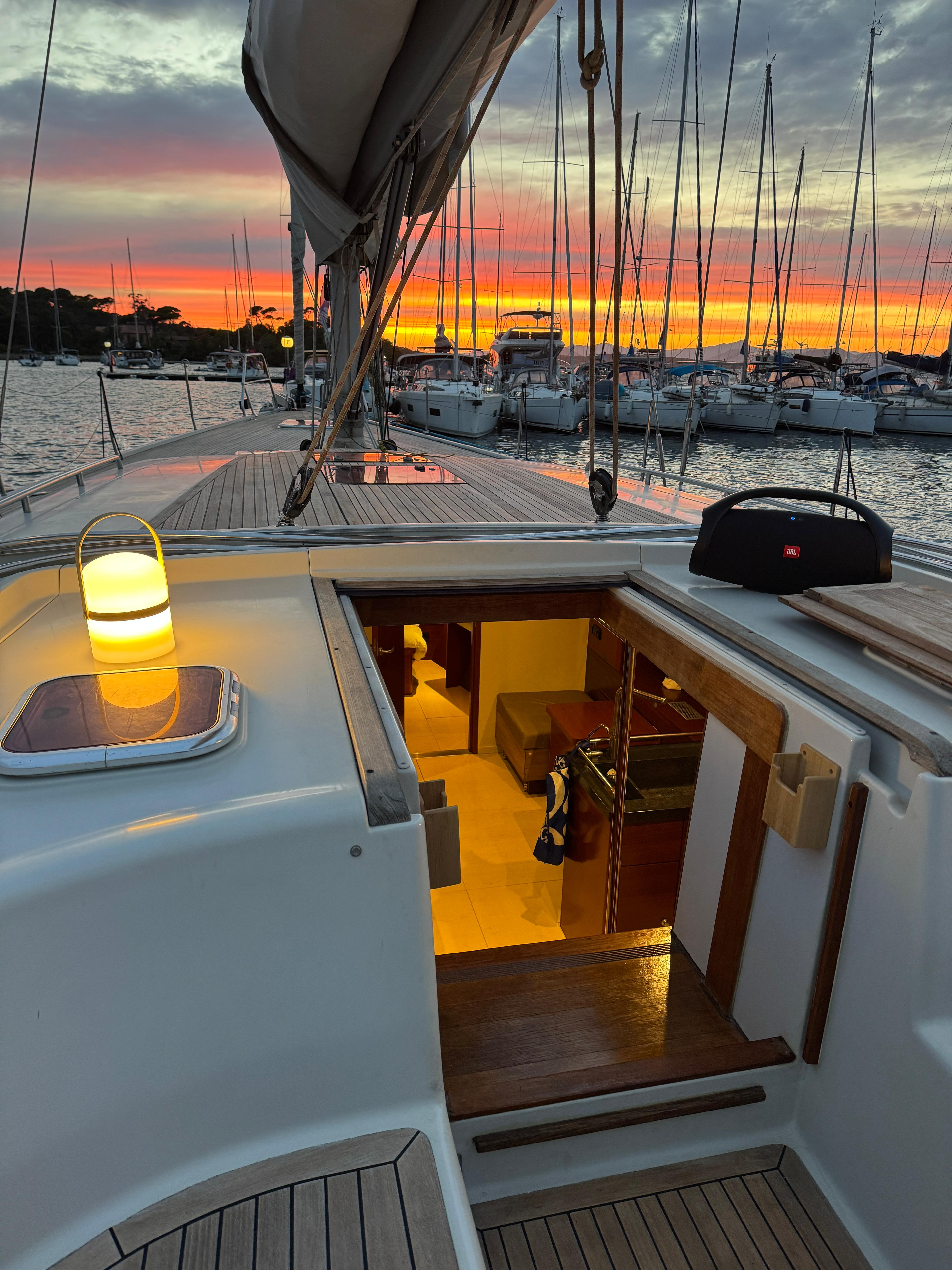 Nous vous proposons la location de notre voilier et de notre Motor Yacht, entretenus avec le plus grand soin, afin d'explorer en toute sécurité les eaux turquoises de Porquerolles, Port-Cros, Le Levant, ou encore partir en escapade à Saint-Tropez — que vous soyez marin confirmé ou simple passionné de la mer.