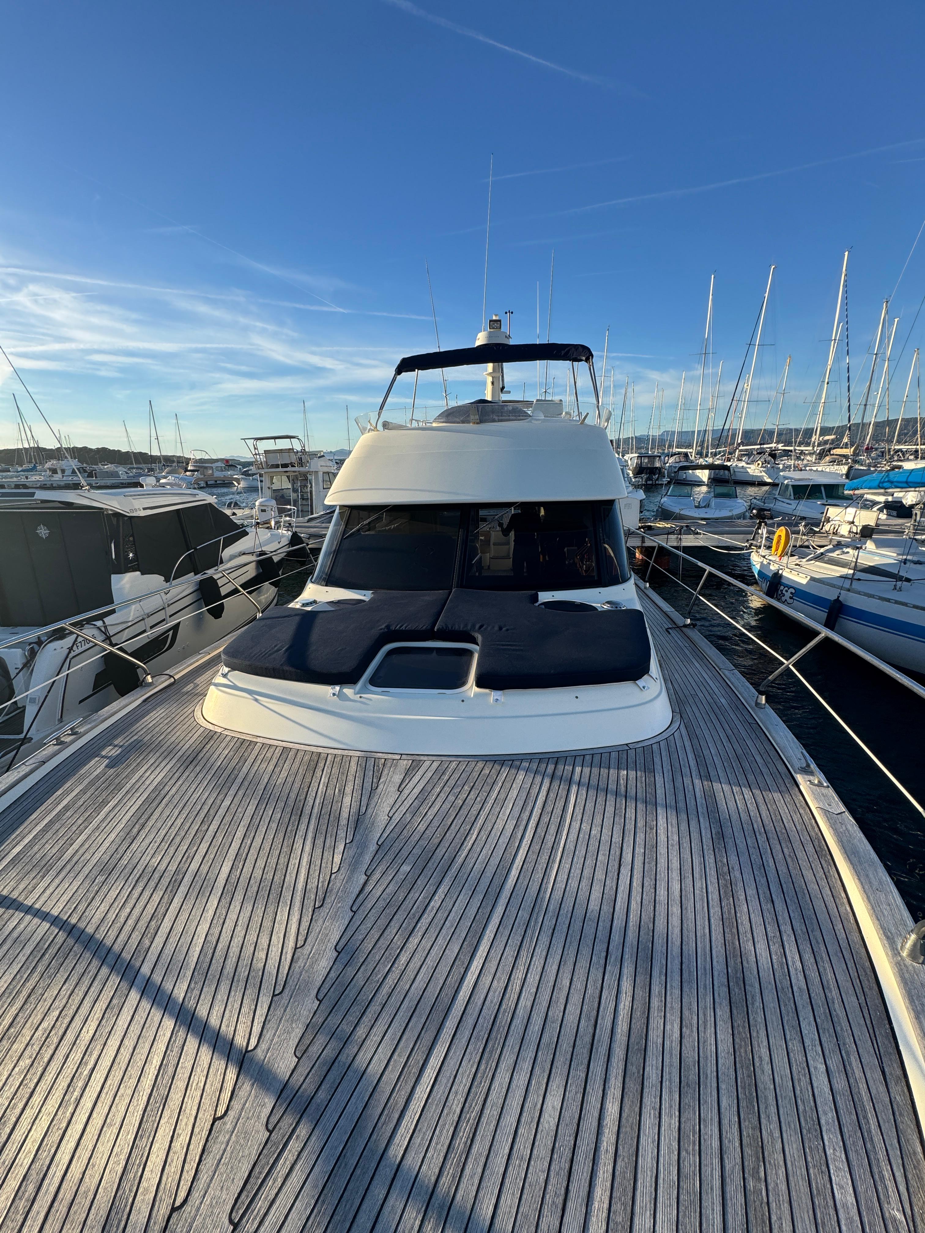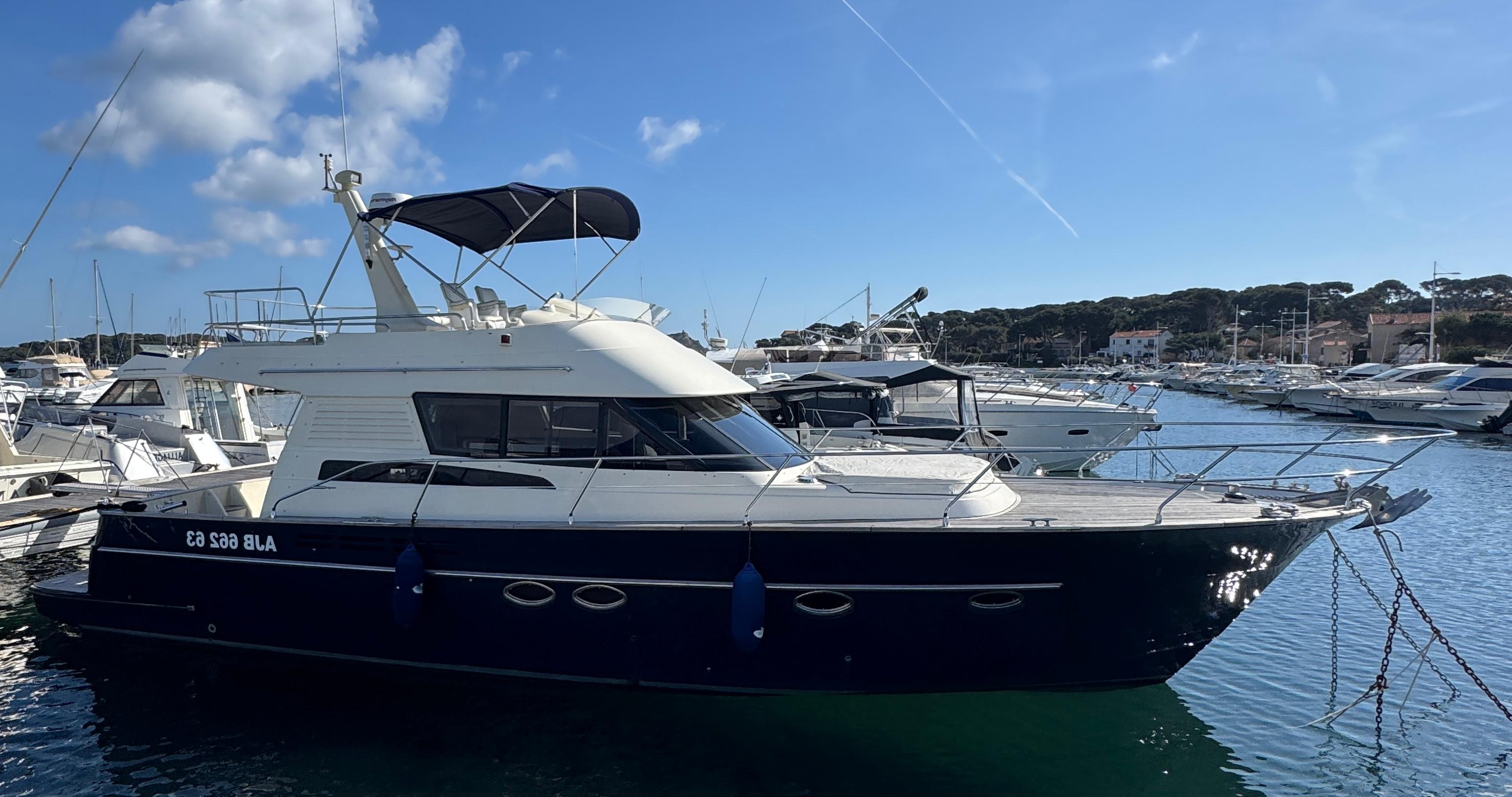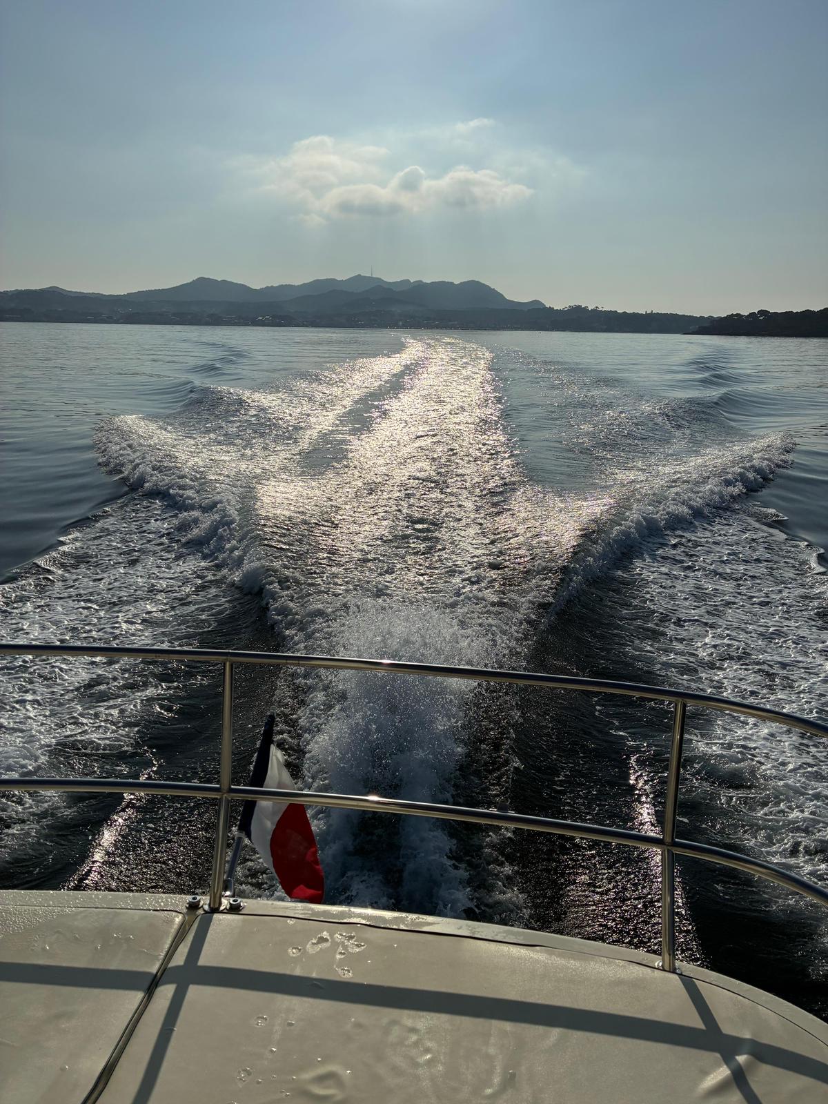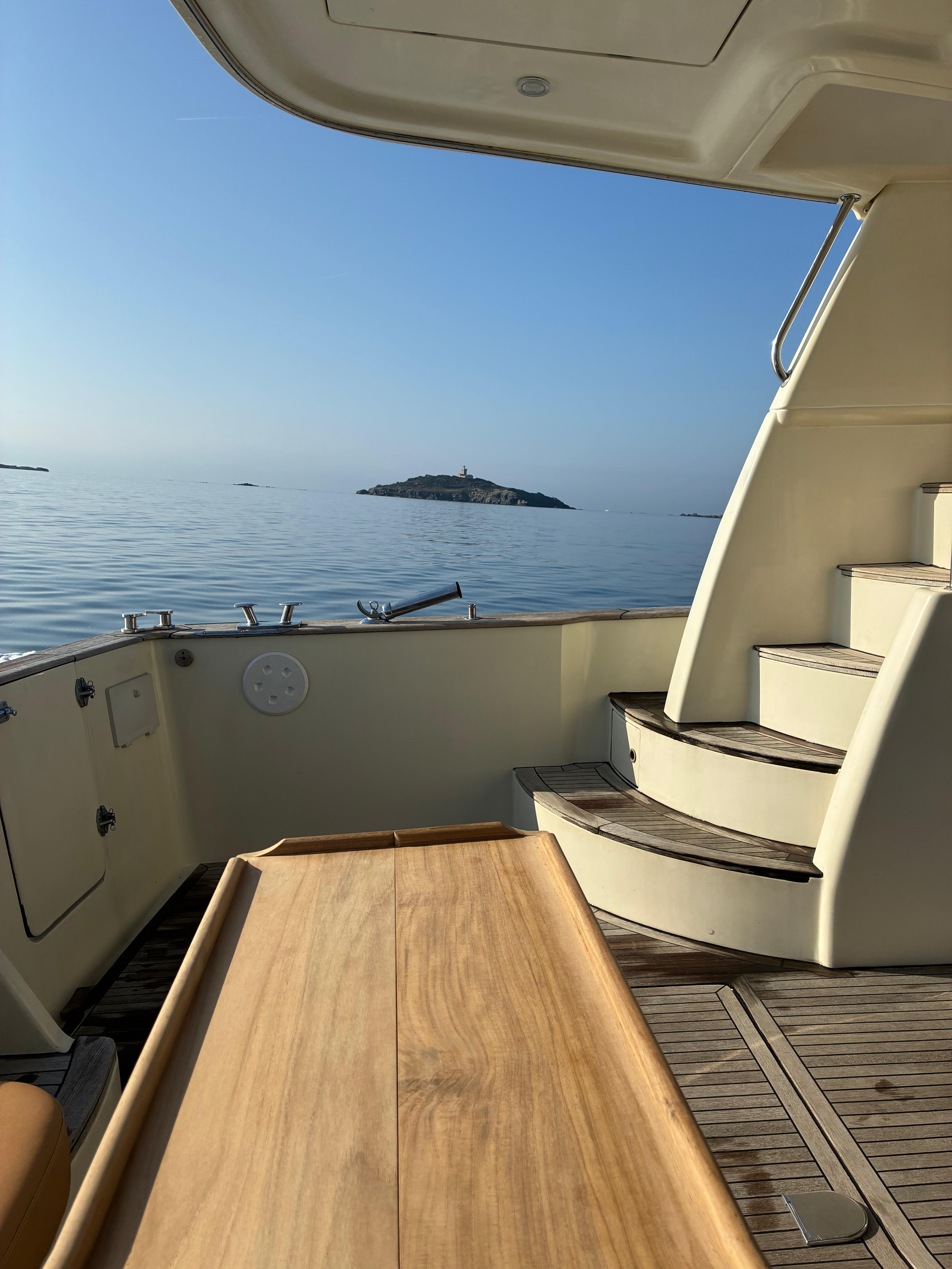 Explorez la côte varoise à bord du yacht Lascia Corra (ACM 43 - 13,5 m - climatisé). Confort premium et vitesse pour rejoindre rapidement les plus beaux mouillages.
